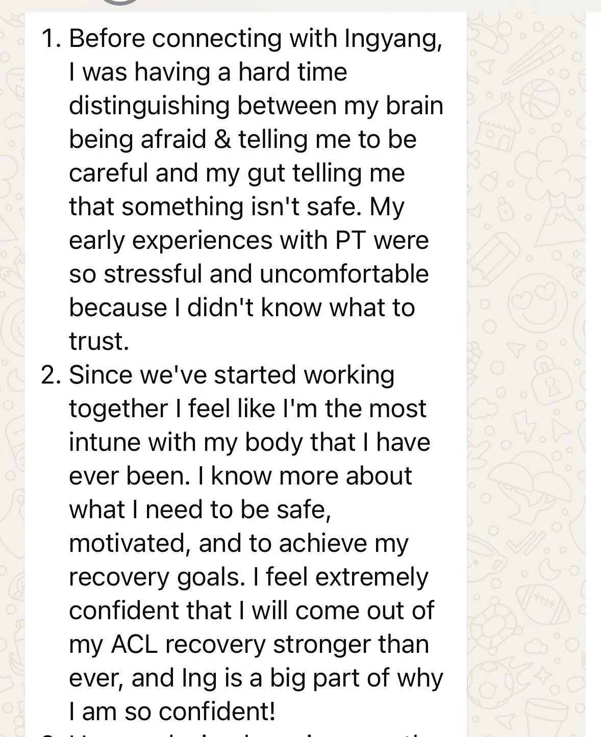 Showing up fully to your recovery work - PT sessions are productive, you sleep better, and you fuel your body properly