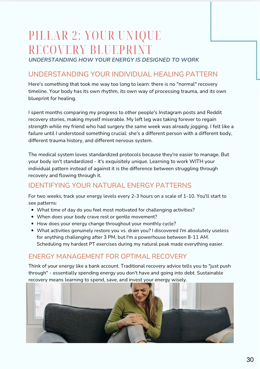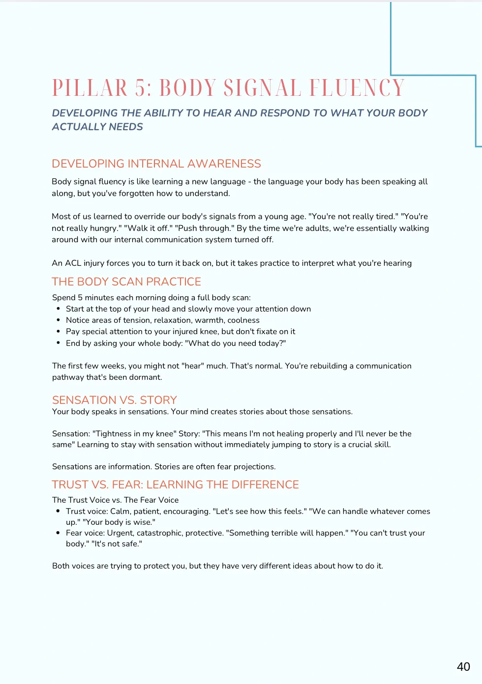 Body Signal Fluency: Developing the ability to hear and respond to what your body actually needs each day for optimal healing (without this, you'll stay stuck in the push-crash-push cycle that keeps you in pain)