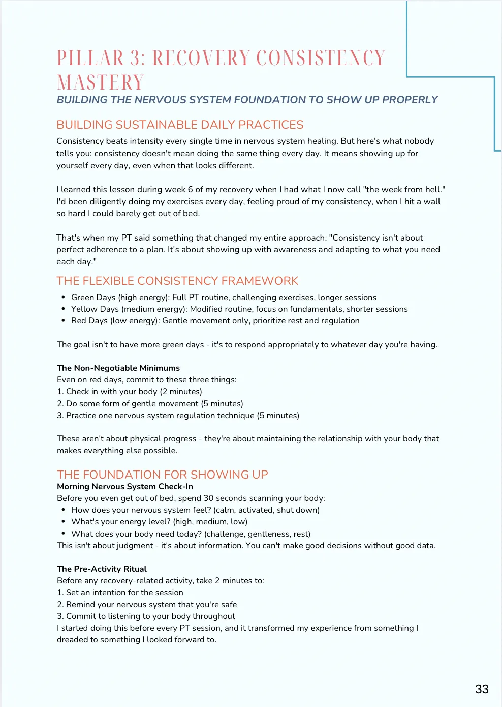 Recovery Consistency Mastery: Building the nervous system foundation to show up properly for PT, eat well, sleep deeply, and follow your recovery protocol (without this, you'll stay stuck in the cycle of good days and setbacks)